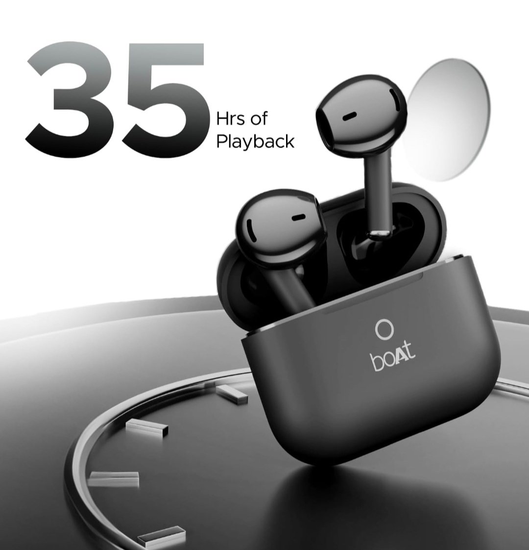 Product details Top highlights BrandboAt ColourJet Black Ear PlacementIn Ear Form FactorIn Ear Impedance100 Ohms Noise ControlActive Noise Cancellation Low Latency BEAST Mode: Experience lag-free high-quality gaming with low latency of up to 50 ms. Visuals align with impactful audio for realistic action. Extensive Playtime: Up to 35 hours of performance gives you plenty of time to listen to your preferred tunes. As for OTT, you can tick off your watchlist with Airdopes Alpha as your audio companion. boAt Signature Sound: Powered by dual 13 mm drivers, these earbuds deliver matchless boAt Signature sound with superior bass. ENx Tech with Dual Mics: To offer unparalleled sound clarity, the dual mics of these earbuds are enhanced with ENxTM tech that wards off background noise. Engage in online discussions easily regardless of your location as your voice is heard without distortion. ASAP Charging: 10 minutes of charging yields about 120 minutes of seamless performance. Revel in music to your heart’s content in no time at all!