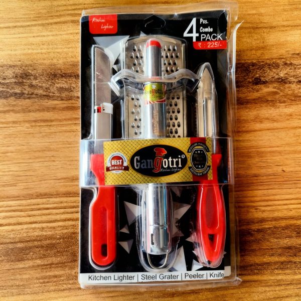 4 in 1 Kitchen Tool Set Lighter Grater Knife Peeler (Combo) Kitchen Tool Set (Multicolor, Gas Lighter, Knife, Peeler, Grater)DSTECHBAR 4 in 1 Kitchen Tool Set Lighter Grater Knife Peeler (Combo) Kitchen Tool Set (Multicolor, Gas Lighter, Knife, Peeler, Grater)