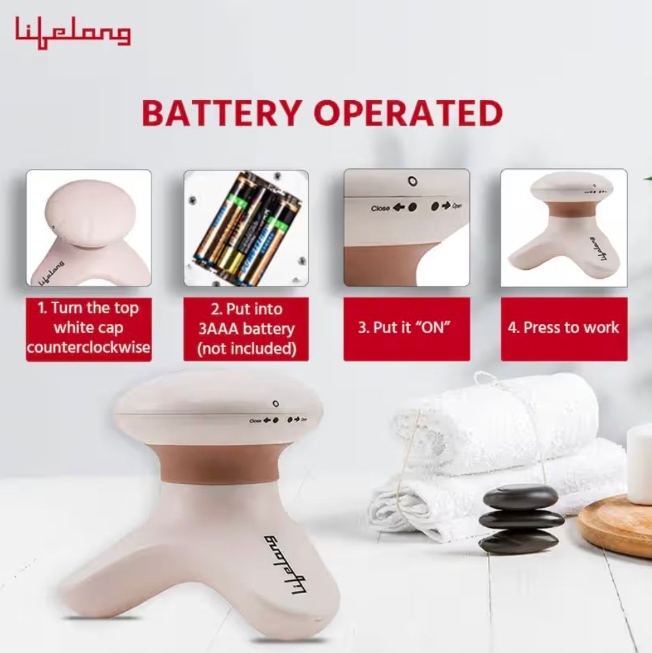 Lifelong Mini Massager is a powerful, hand-held massager designed to stimulate pressure points and relax stiff muscles and nerves. A massage from it results in instant rejuvenation and extreme relaxation with enhanced blood circulation.Its high-frequency points can massage the temples, and other brain points to eliminate uncomfortable feeling of drowsiness and fatigue, poor memory and appetite.Lifelong Mini Massager promotes blood circulation and enhanced body metabolism and stimulates nerve endings through reflexology therapy. Power Source: 4.5W